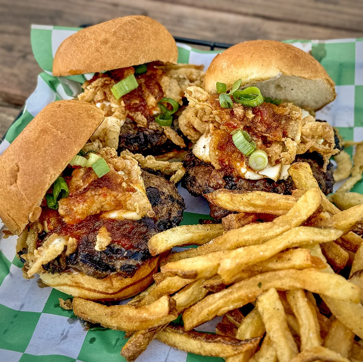Cap’s Food Shack, a shiny black food truck adorned with neon-colored shapes of food and its signature shamrock symbol that launched in summer of 2023, posts up at regular locations across Humboldt that rotate based on the day of the week. The menu is perfectly pared down to the most successful offerings based on Campusano’s direct approach to R&D with his customers. Their best seller is the Smokestack Sliders; three sizable charbroiled patties on toasted buns, with house-smoked cream cheese, crispy fried onion tanglers, a homemade jalapeno jelly, green onions, tomato, and a slather of homemade garlic aioli. His burgers are loaded, filling you up with a symphony of homemade flavors and textures, served with your choice of a side. According to customer Addie Segura-Dunaway, the fries are the closest thing you can get to the beloved fries from the now closed Mike’s Drive-Up in Eureka (you can order ‘em garlicky from Cap’s for an extra buck!).
